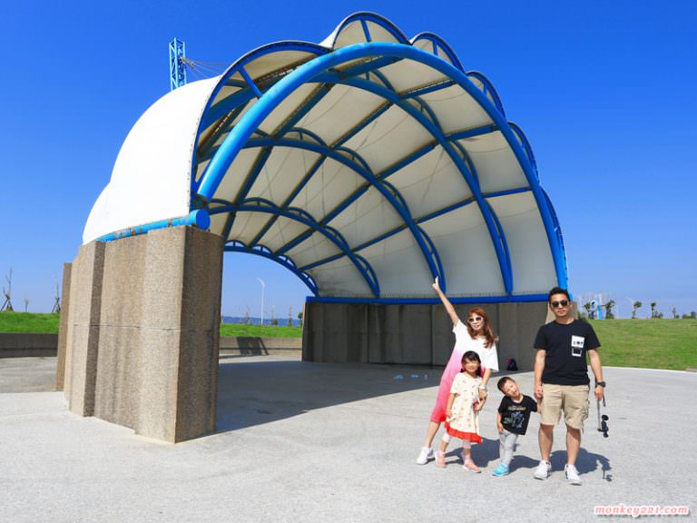 『南寮貝殼公園』,就是有個很像大貝殼的造景。沿途還有許多大草皮,好多人在放風箏很漂亮。
