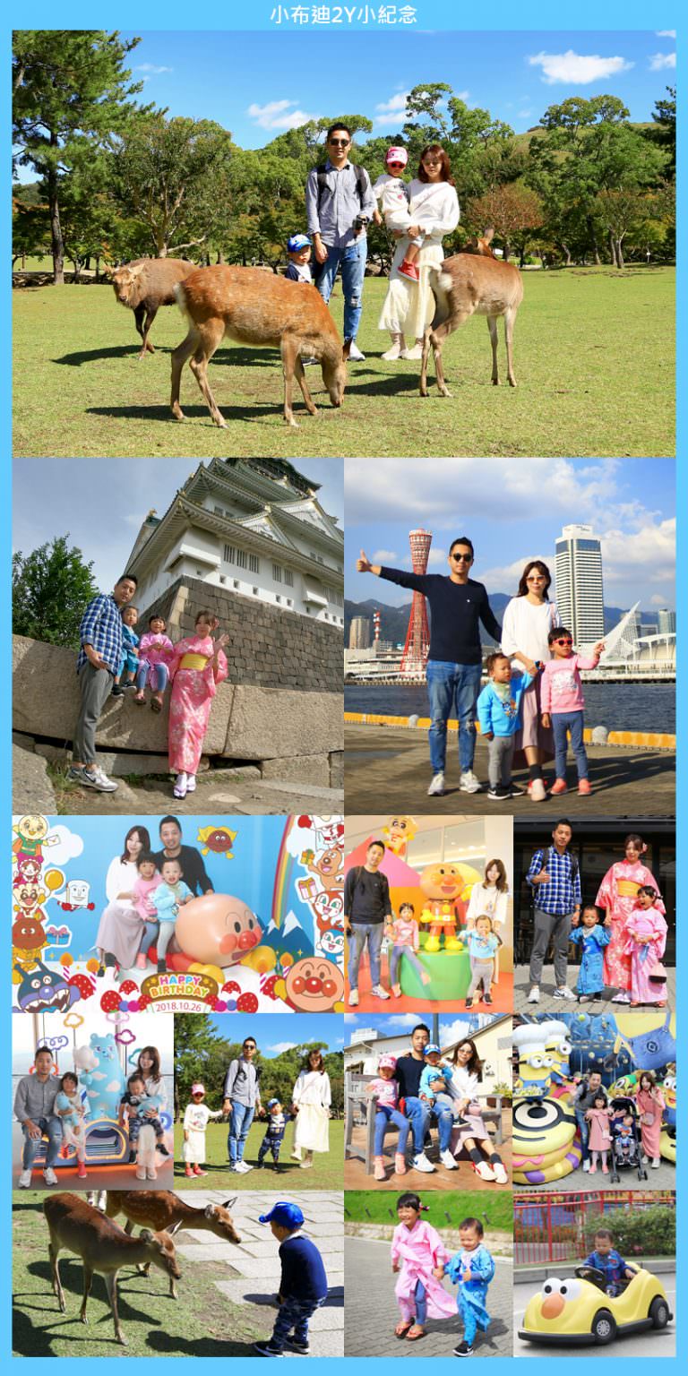 啪啪啪,小布迪今天10/26滿2歲啦,正式脫離嬰兒,變成小孩啦(以後出國都要多買一張機票了)!趁著滿2歲前,帶小布迪到日本大阪慶生,去了奈良找鹿玩、神戶麵包超人博物館慶生吃蛋糕、環球影城玩了好多設施、大阪城穿和服,整個也是充實到不行啊!這是小布迪的第4次海外旅行,其實之前去過美國玩了15天後,到日本玩根本是零難度。